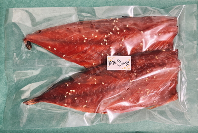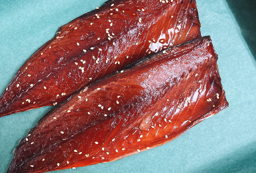 さばみりん干し(2ヒレ袋入り) ツイートする シェアする 販売価格: 864円(税込み) 会員価格 800円(税込み) 通常価格 864円(税込み) 在庫 商品コード 000023 JANコード 4571100960090 数量 - + カートに入れる カテゴリー みりん干し ●商品名さばみりん干し(2ヒレ袋入り)●原材料真鯖(萩産)、醤油、ごま、砂糖、米発酵調味料/アルコール、調味料(アミノ酸等)、着色料(カラメル、黄4、赤102)、甘味料(ステビア)、(一部に大豆・小麦を含む)●賞味期限要冷凍30日●保存方法要冷凍-15℃以下●栄養成分表示(100g当たり)熱量245kcal、たんぱく質12.1g、脂質9.9g、炭水化物4.8g、食塩相当量1.2g、推定値